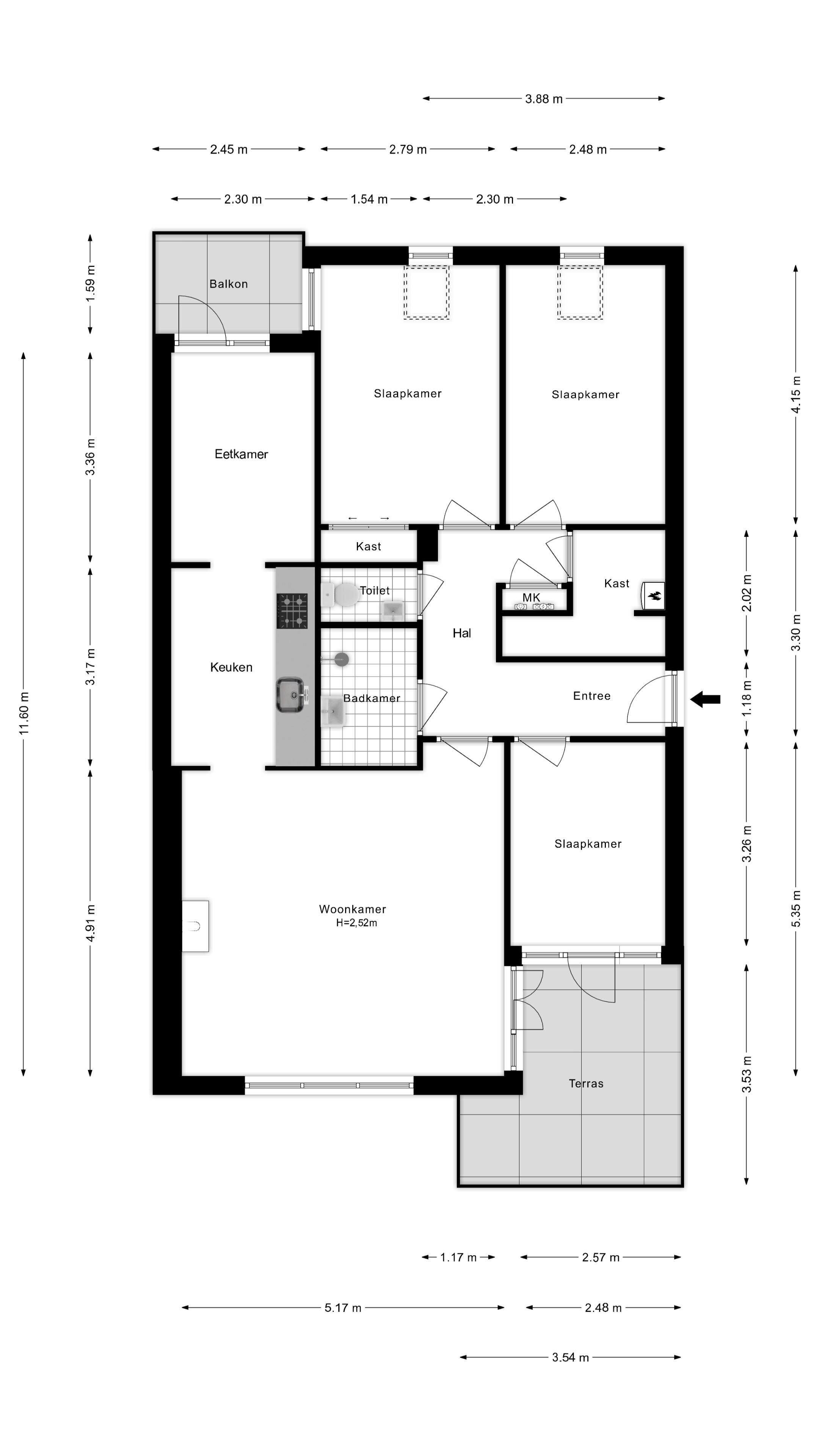 * Licht appartement voorzien van 3 ruime slaapkamers;